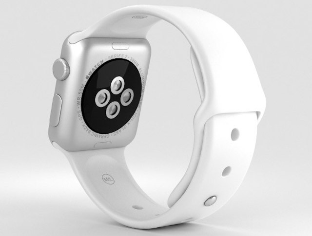 Mặt dưới Apple Watch là cụm cảm biến dùng để đo nhịp tim và cũng là nơi đặt sạc không dây