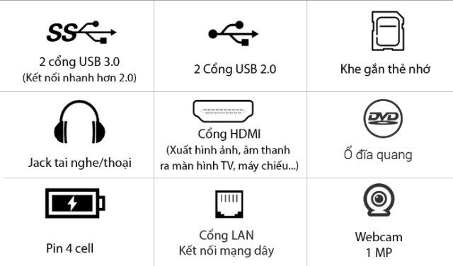 Kèm theo cổng USB 2.0 thường máy trang bị thêm 2 cổng USB 3.0 giúp truyền tải dữ liệu nhanh hơn. Kết nối dễ dàng hơn đến các máy in hoặc máy scan.