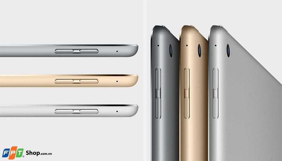 Ngay cả khi sở hữu màn hình khổng lồ, iPad Pro vẫn có một thiết kế mỏng nhẹ đến kinh ngạc - chỉ 6,9 mm độ mỏng và 713g cân nặng. Nhờ thiết kế vỏ nhôm nguyên khối kết hợp với những đường cắt kim cường sắc xảo đến từng chi tiết, iPad Pro gần như thu hút mọi ánh nhìn không chỉ bởi sự sang trọng, tỉ mỉ, nét đẹp cao cấp mà còn là kích thước quá khổ của nó.